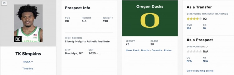 相信很多人已经注意到了打夏威夷大学命中绝杀的5号TK辛普金斯,这个哥们是转校生,上赛季在埃隆大学最后六七场表现非常抢眼,高中时没有排名,但作为转校生有四星。