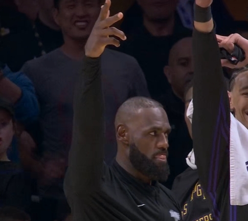 小詹也来啦!布朗尼披挂上阵三分张手就有 詹姆斯场下开心庆祝