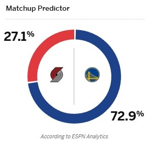 2025-11-21 16:14:065连主场首场!ESPN明日胜率预测:勇士高达72.9% 开拓者仅为27.1%
