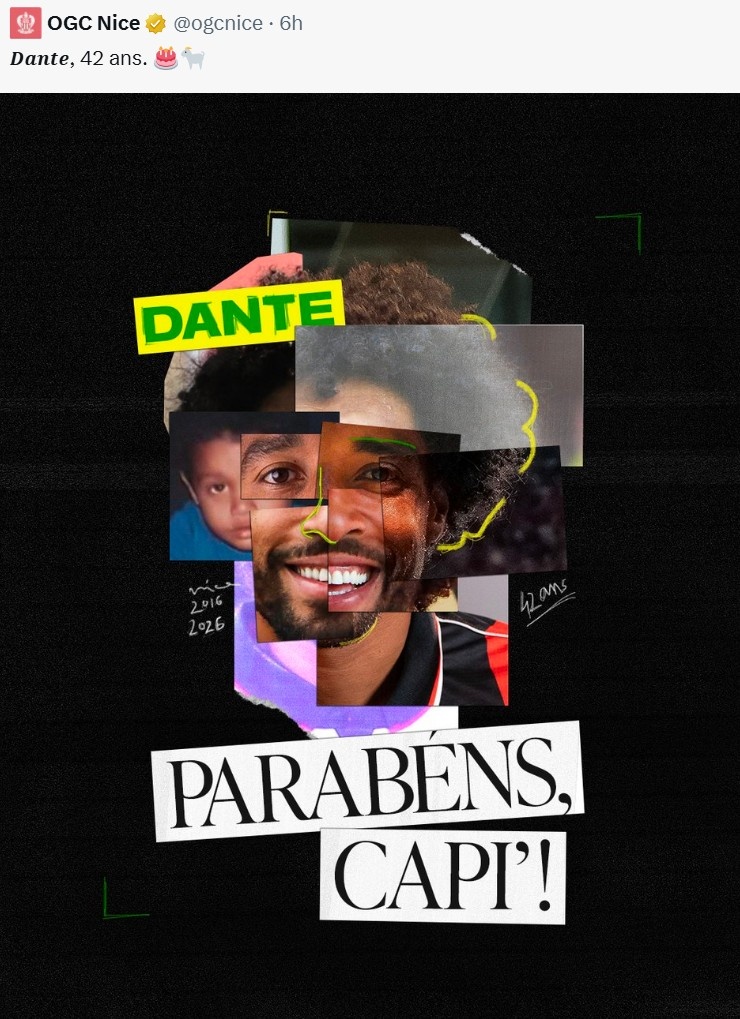 今天是丹特42岁生日,这名巴西后卫也成为法甲自1947/48赛季之后,出场第三年长的球员,仅次于罗杰-库尔图瓦的44岁4天以及维托里诺-希尔顿的43岁252天。