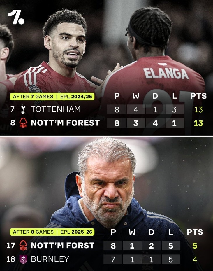 2025-10-19 00:05:53一落千丈,诺丁汉森林上赛季前8轮仅1负列第8,本赛季8轮1胜第17